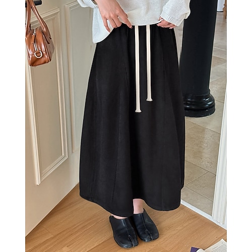 Per donna Gonna Casual Maxi Vita Alta Gonne Semplice Coulisse Inelastico Micro-elastico Quotidiano Streetwear Vinaccia blu navy Nero Bianco Primavera Velluto a coste Poliestere