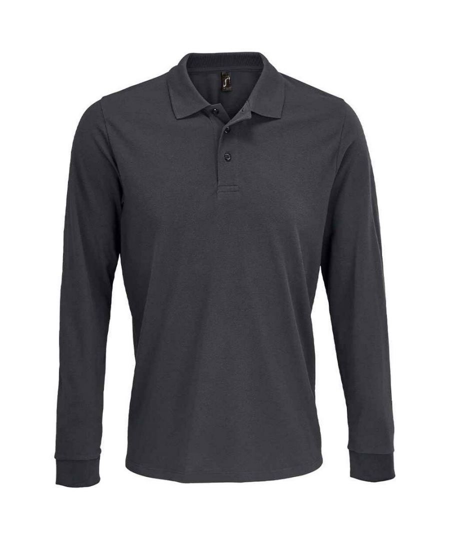 SOLS Mens Unisex Adult Prime Pique Long-sleeved Polo Shirt (dark Grey) - Size 2XL | SOLS Sale | Discount Designer Brands