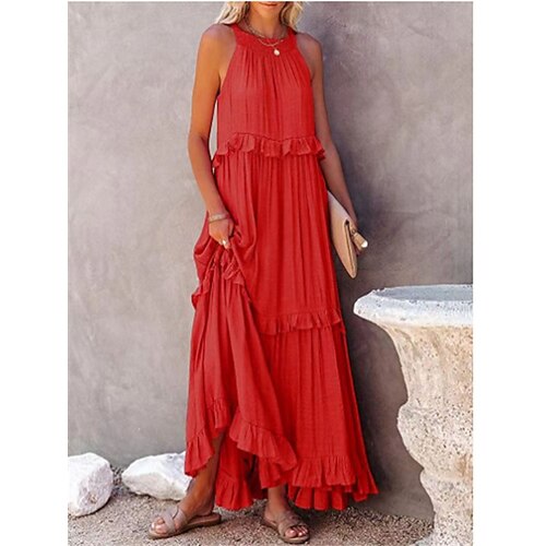 Per donna Abito maxi Abito Bianco Abito da Spiaggia Vestito a ruota Elegante Vintage Moda Quotidiano All'aperto Spiaggia Vestibilità comoda Semplice Senza Maniche Girocollo Blu Bianco Giallo Rosa