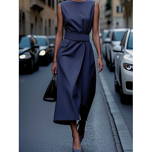 Per donna Abito Midi Abito Bianco Vestito da Festa Abito da Cocktail Abito a trapezio Elegante Moda Moderno Ufficio Feste Cocktail party Vestibilità regolare Semplice Senza Maniche Scollo a V Nero
