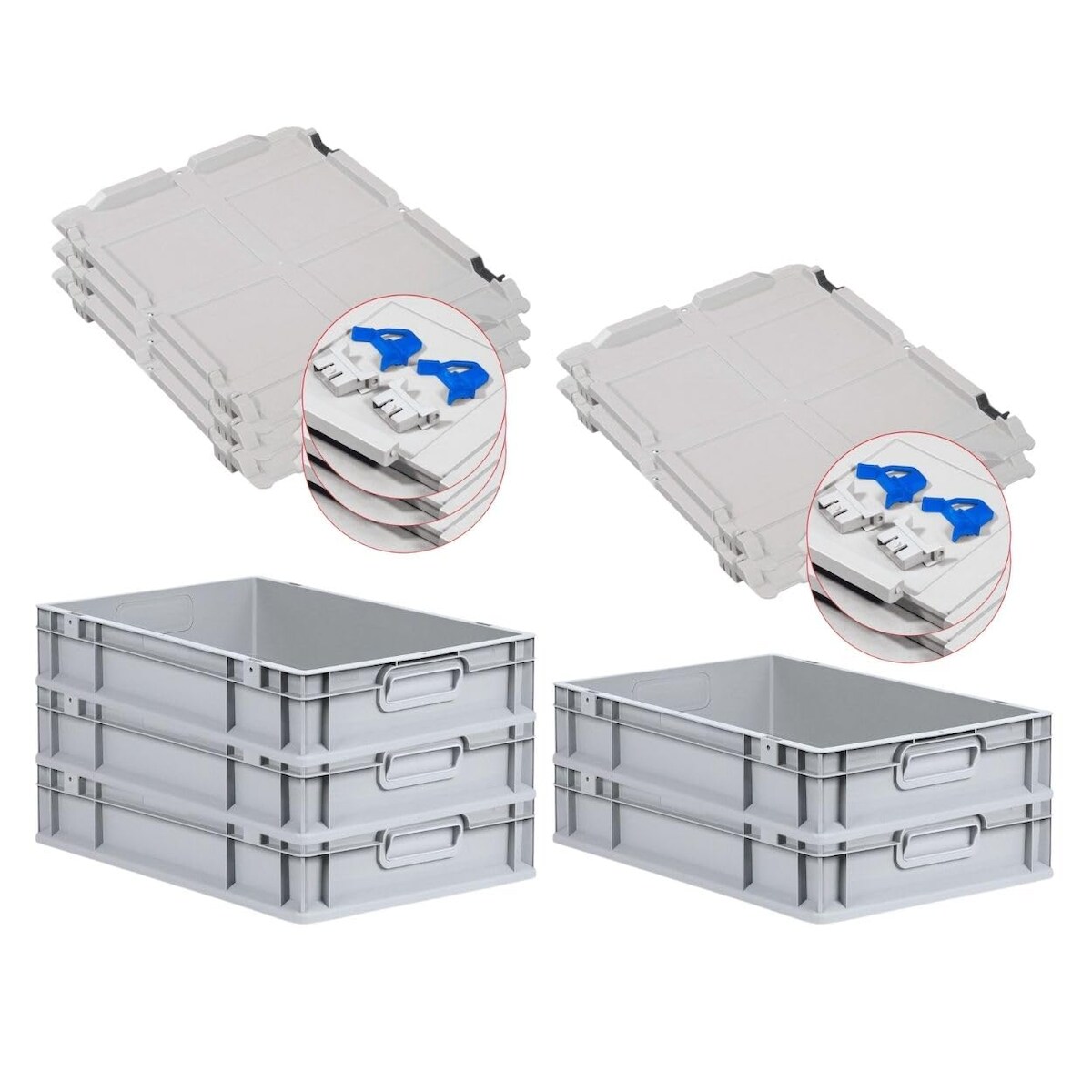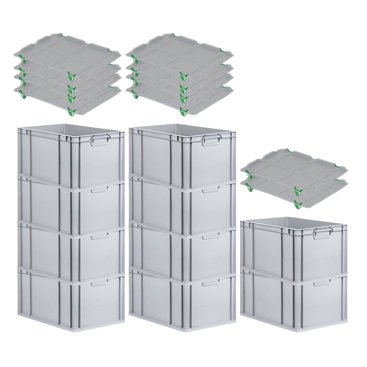 PROREGAL SparSet 10x Eurobox NextGen Economy mit Auflagedeckel & 4x Verschlüsse Grün, Griffe zu, HxBxT 32x40x60cm, 65L, Eurobehälter, Box