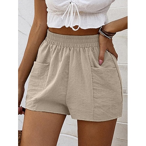 Per donna Pantaloncini in cotone e lino Chinos Shorts Vacanza Essenziale Casual Corto Vita Alta Tinta unica Tasca Fascia Elastica Comodo Morbido Confortevole Micro-elastico All'aperto Vacanza