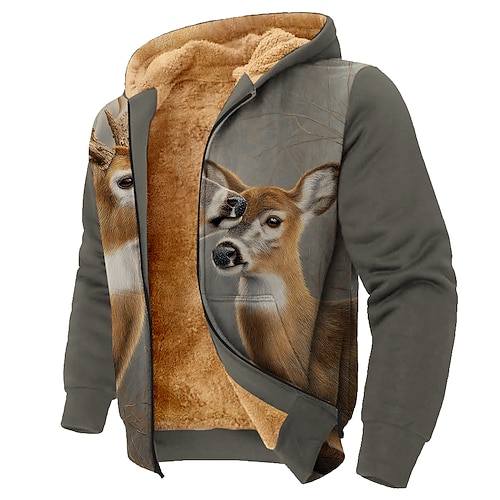 Per uomo Mimetico Cervo Pile Felpa con Cappuccio Giacca di pelle Felpa Classico Militare Da caccia Manica Lunga Girocollo All'aperto Campeggio Nero Marrone Grigio Con zip Autunno Inverno progettista