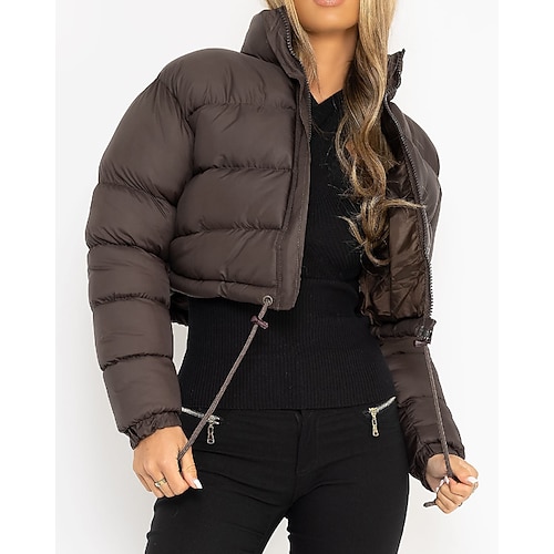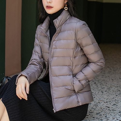 Per donna Cappotto Invernale Giacca Piumino Caldo Confortevole Cerniera Tasca Casual Tinta unica Abbigliamento quotidiano Uscire Weekend Corto Collo alla coreana Vestibilità regolare Manica Lunga