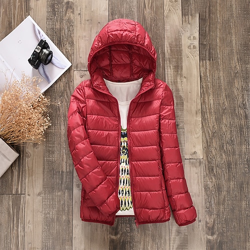 Per donna Giacca Piumino Caldo Confortevole Cerniera Tasca Casual Semplice Ferie Abbigliamento quotidiano Uscire Casual Quotidiano Cerniera Regolare Con Cappuccio Vestibilità regolare Manica Lunga