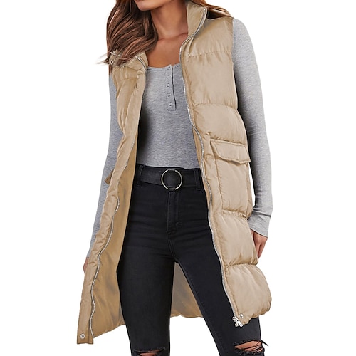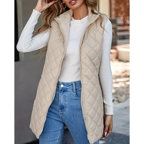 Per donna Cappotto Invernale Giacca Piumino Gilet Caldo Confortevole Cerniera Tasca Casual Semplice Vacanza Casuale Abbigliamento quotidiano Uscire Regolare Lungo Collo ripiegato Vestibilità regolare