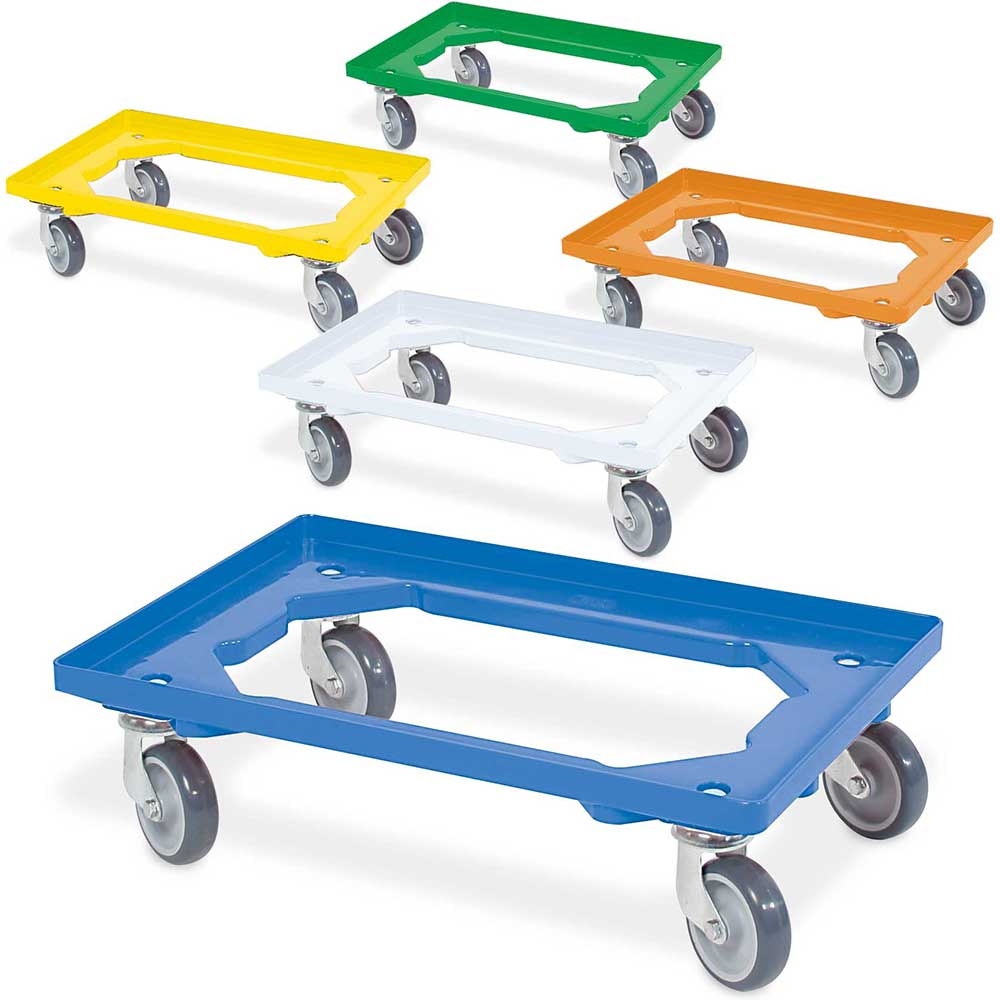 BRB Set, 5x Logistikroller/Kistenroller für Behälter 600 x 400 mm, je 1 Roller in blau, gelb, grün, orange, weiß