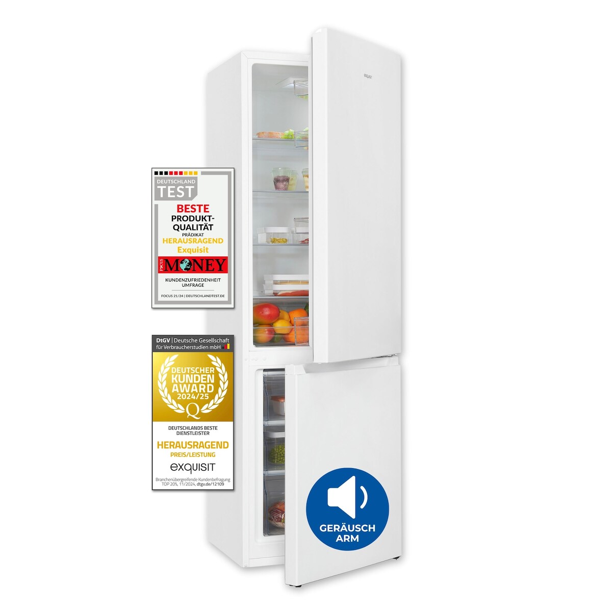 Exquisit Kühl-Gefrierkombination KGC5265-70-010E weiss | Nutzinhalt: 269 L | 4-Sterne-Gefrieren | Türanschlag wechselbar | Mit Gefrierfach