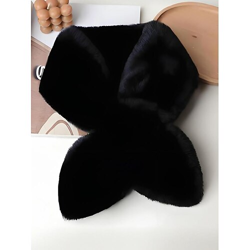 sciarpa natalizia in pelliccia sintetica da donna, morbido scaldacollo con nodo incrociato in peluche, elegante scialle invernale per feste e regali