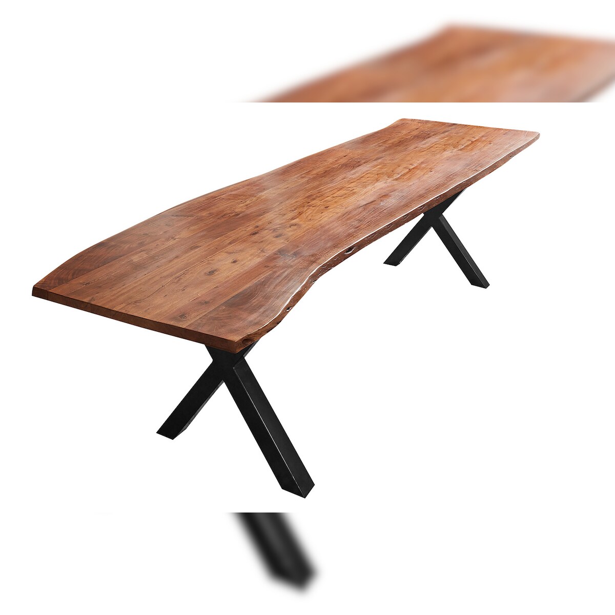 SAM® Esstisch Baumkante massiv Akazie nuss 240 x 100 X-Gestell schwarz XANTEN