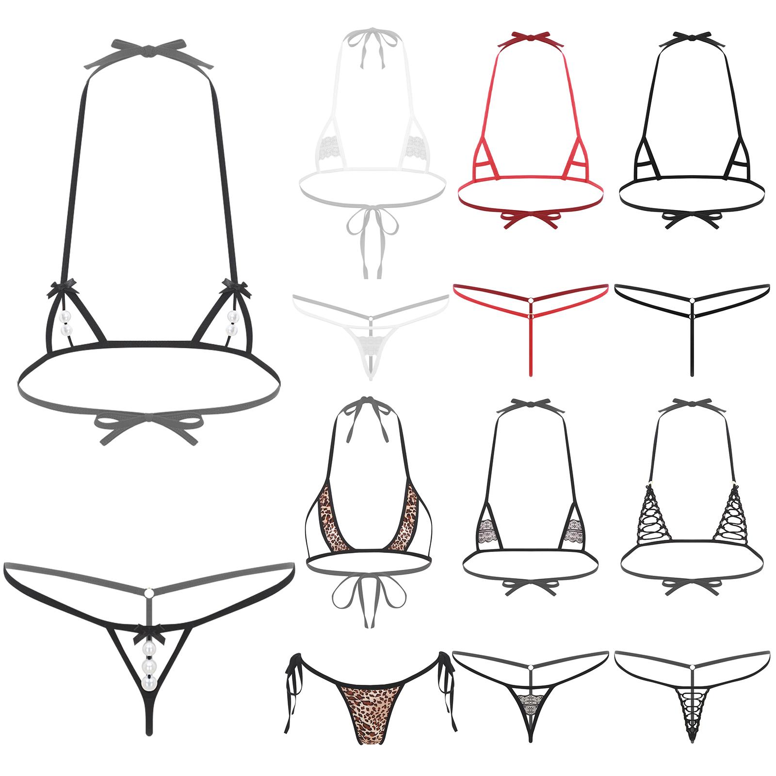 Womens Micro Bikini Set Hollow Out Cup Halter Bra Top with T Back G String Thong Underwear for Swim Beach cm