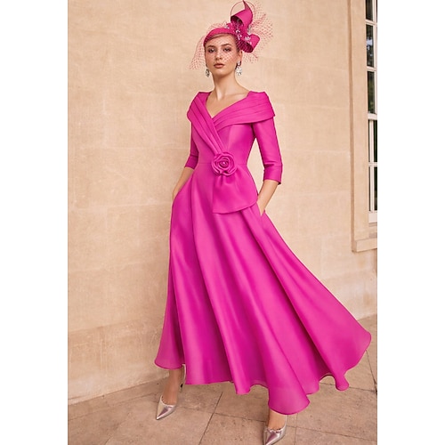 Linea ad A Lunghezza alla caviglia Abiti da Cocktail Abiti da festa Elegante Monocolore Setoso Manica Corta Scollo a V Matrimonio Formale Tasca Raso con Tasca
