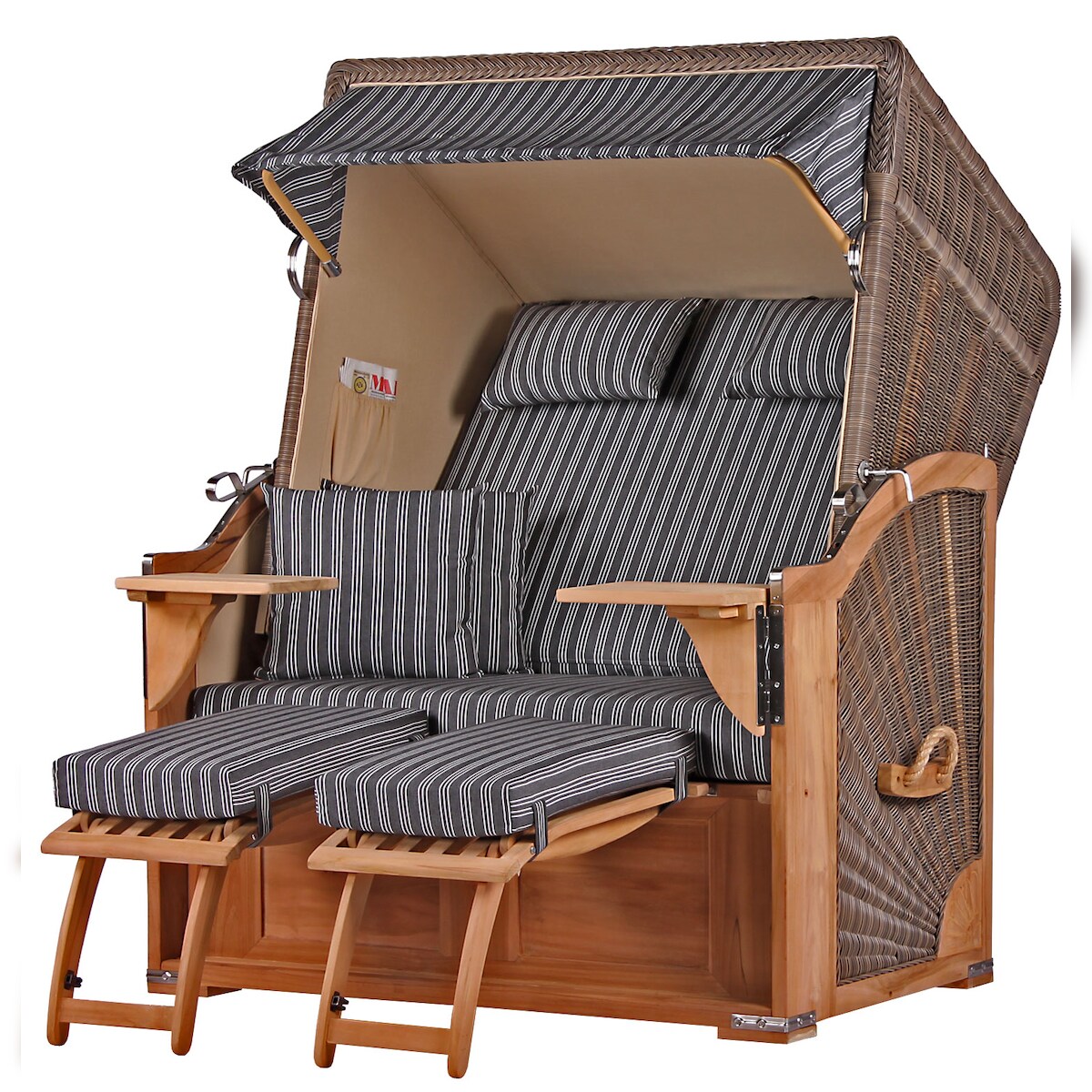 Mr. Deko Strandkorb Komplettset - bene living - Schaalsee Teak - PE grau - Modell 505 - inkl. Liftersystem