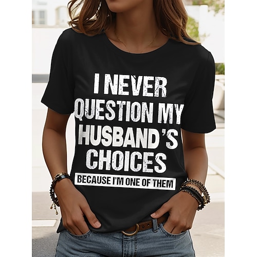 Per donna Maglietta Grafico Lettera Elegante Casual Manica Corta Girocollo Top Regolari Quotidiano Weekend Stampato Nero Estate Primavera Teasing husband