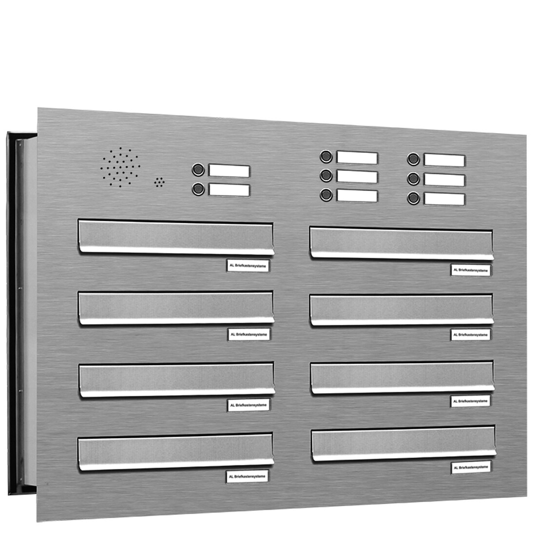 AL Briefkastensysteme 8 Fächer Premium Edelstahl Durchwurf Briefkasten Anlage mit Klingeln, Post A4, robust, wetterfest, Artikelnummer: 132V8DV2KS