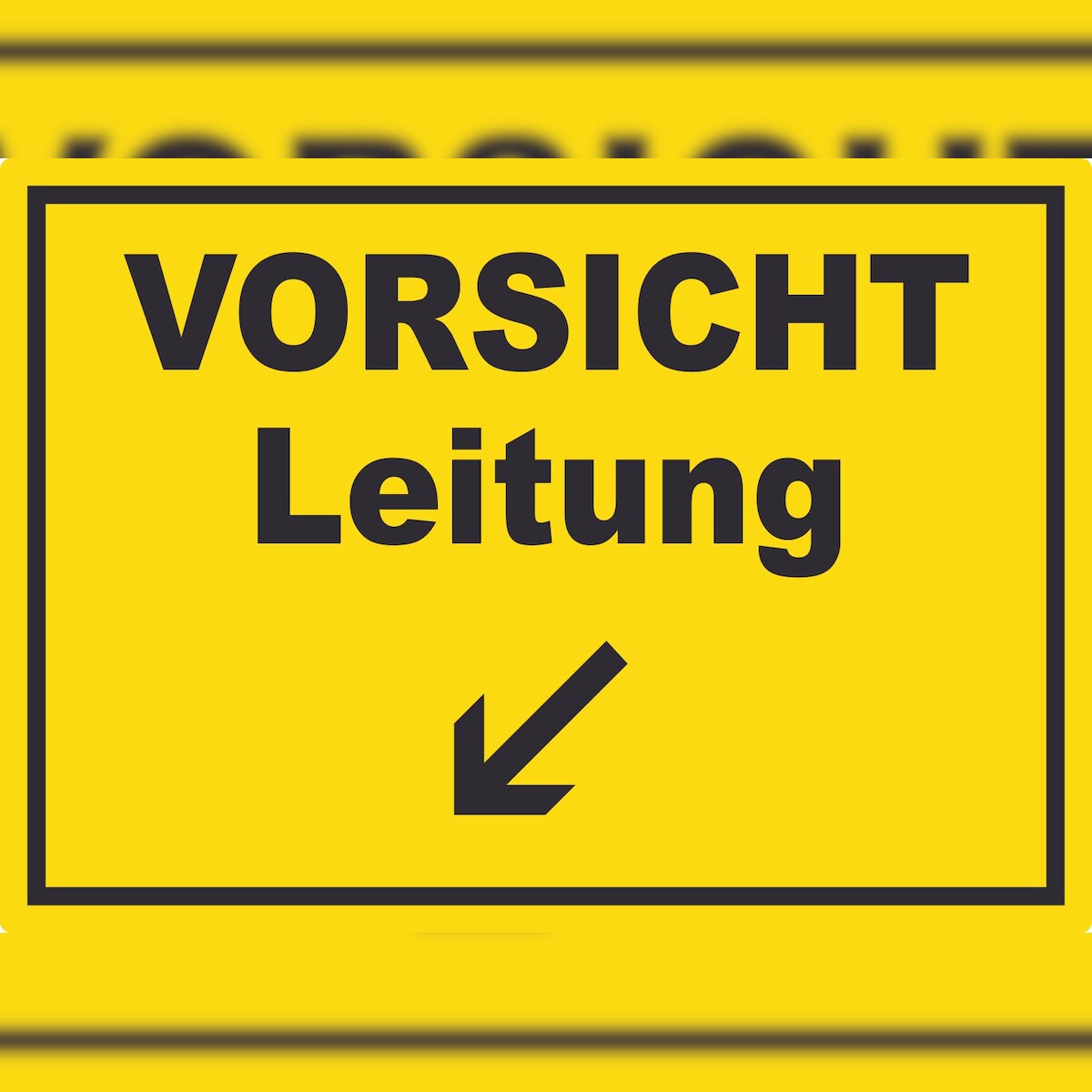 HB-Druck Vorsicht Leitung mit Richtungspfeil links unten Aufkleber A7 (74x105mm)