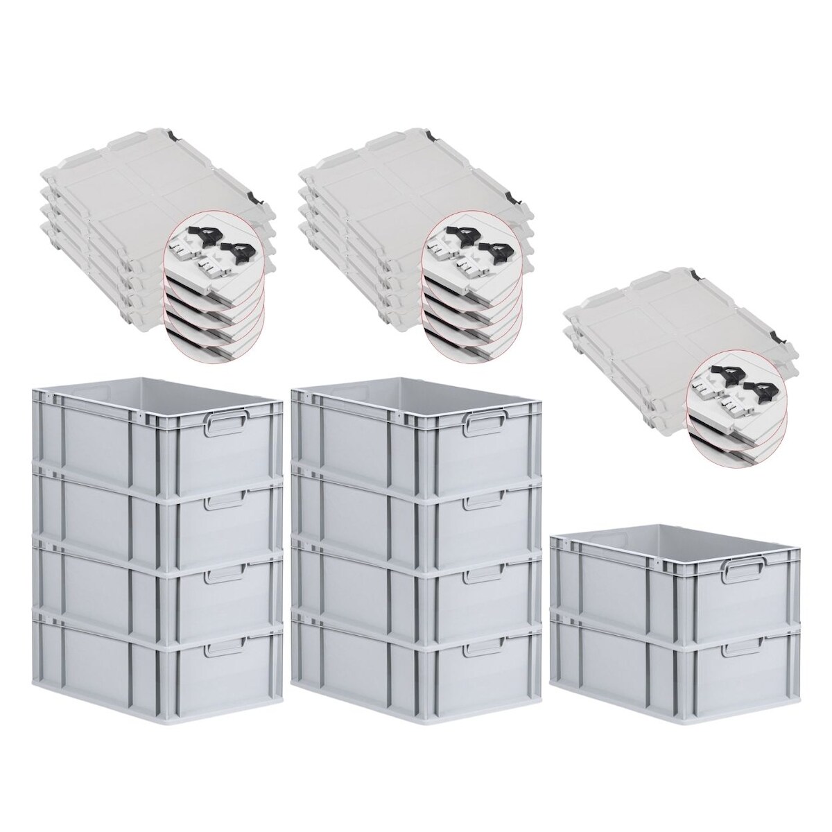 PROREGAL 10x Eurobox NextGen Grip mit Scharnierdeckel & schwarzen Verschlüssen | HxBxT 22x40x60cm | 44 Liter | Griffe geschlossen | Verstärkter Boden