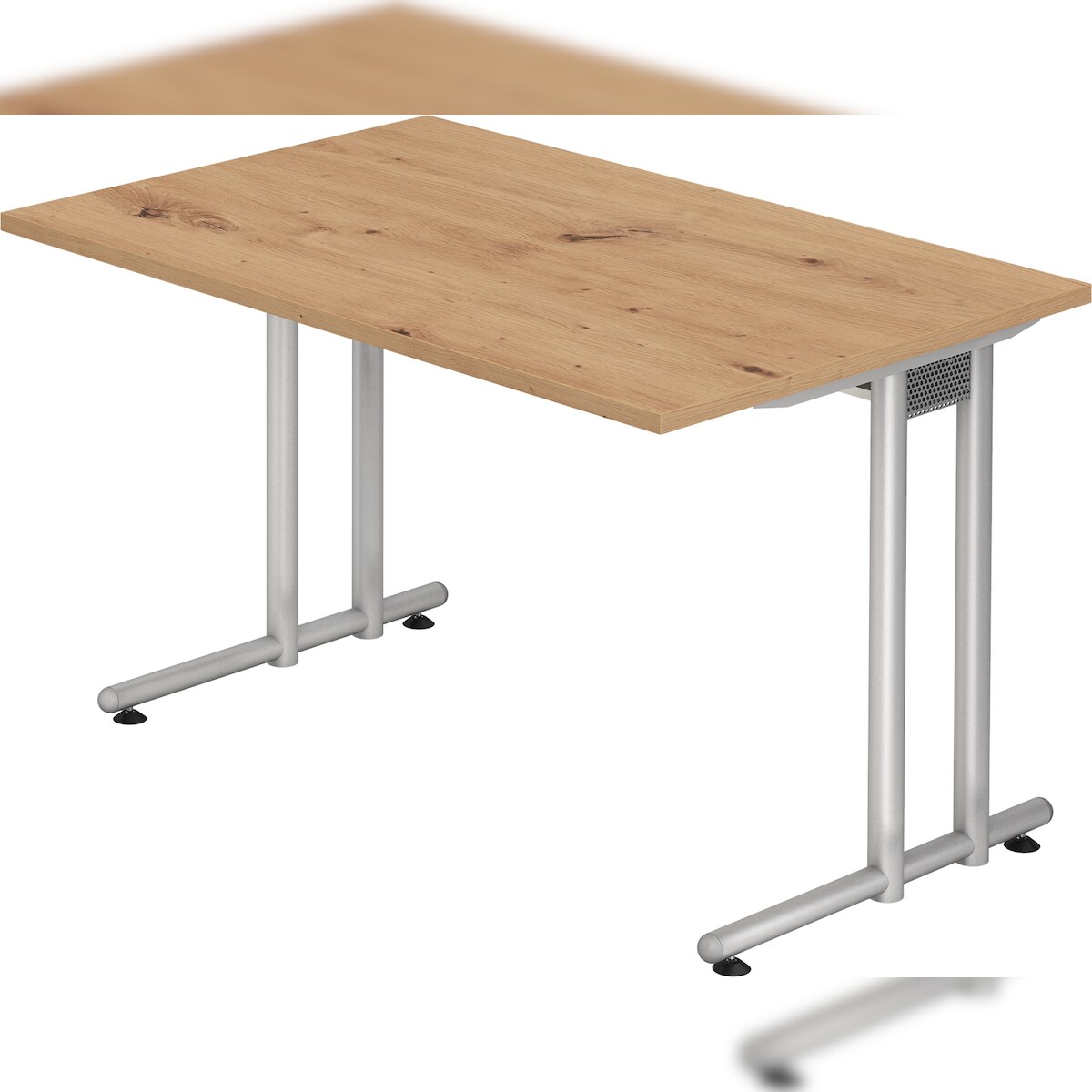 bümö Schreibtisch klein N-Serie 120x80 cm, Tischplatte aus Holz in Asteiche, Gestell aus Metall in Silber - PC Tisch, kleiner Computertisch für's