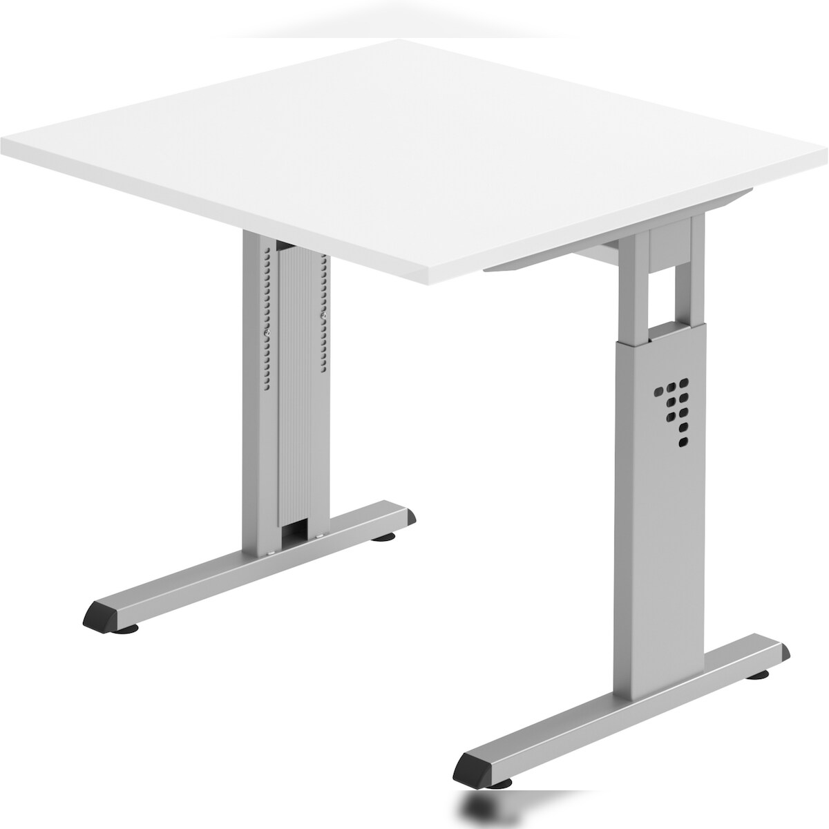 bümö höhenverstellbarer Schreibtisch O-Serie 80x80 cm in weiß, Gestell in Silber - PC Tisch klein für's Büro manuell höhenverstellbar, Computertisch