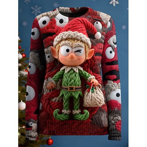 Maglione Pullover Natalizio da Donna Casual Graphic Claus Collo Rotondo Rigato Maglietta Manica Lunga Regolare Tops Knit Outdoor Weekend Rossa Autunno Inverno