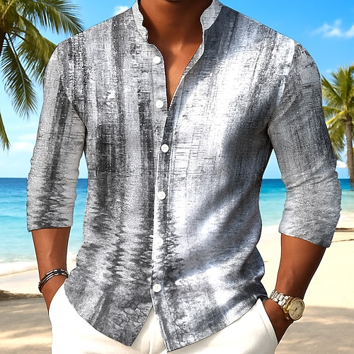 Per uomo Geometrico Colore sfumato Arte astratta Camicia Camicia con Bottoni Camicia con colletto alla coreana Manica Lunga Casual All'aperto Vacanza Quotidiano Primavera Autunno Collo alla coreana