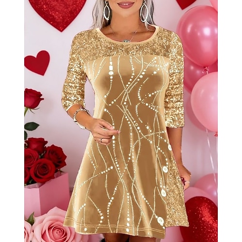 abito da festa da donna manica a tre quarti paillettes impreziosito aderente e svasato lunghezza al ginocchio festa sera rosso oro glitterato comfort elasticizzato abbigliamento invernale