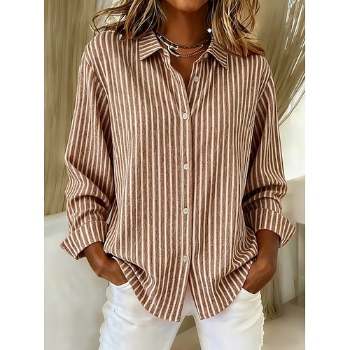 Per donna Camicia Blusa A righe Vintage Elegante Casual Manica Lunga Colletto a Camicia Top Regolari Quotidiano Bottoni Stampato Rosso Marrone chiaro Blu Arancione Grigio Primavera Autunno Inverno