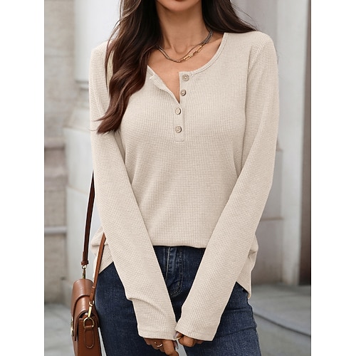 Per donna Maglietta Semplice Moda Elegante Classico Manica Lunga Girocollo Top Regolari Quotidiano Weekend Bottoni Blu Nero Viola Beige Estate Primavera Autunno