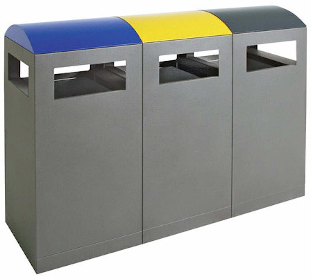 PROREGAL Abfallbehälter für Außenbereiche mit verzinktem Innenbehälter, 3x90L, HxBxt 106x135x45cm, Brandschutzklasse A1, Anthrazitgrau/Blau/Gelb