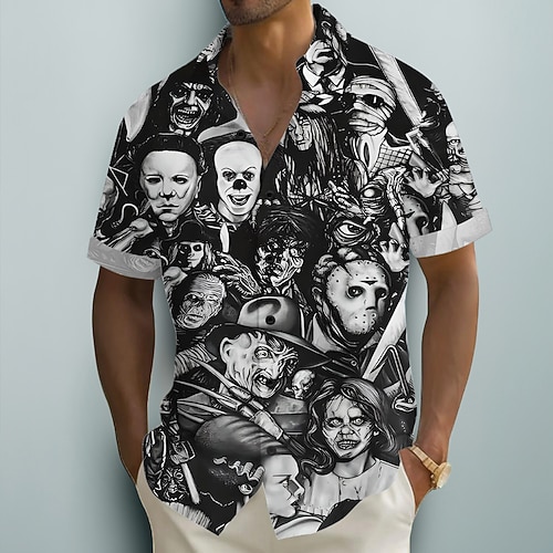 Per uomo Pagliaccio inquietante Retrò Burlone Camicia Camicia Estiva Camicia con Bottoni Manica Corta Gotico punk oscuro Ferie Abbigliamento casual alla moda Estate Collo ripiegato Stampa 3D Camicia