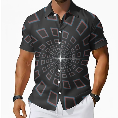 Per uomo Geometrico Colore abbagliante Vortice 3D Camicia Camicia con Bottoni Manica Corta Moda Casual Quotidiano Vacanza Estate Primavera Collo ripiegato Stampa 3D camicie con colletto Nero Verde