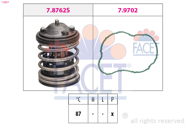 FACET Thermostat, Kühlmittel 7.8827 mit Dichtung für BMW 11517805192 8512234 11518512234