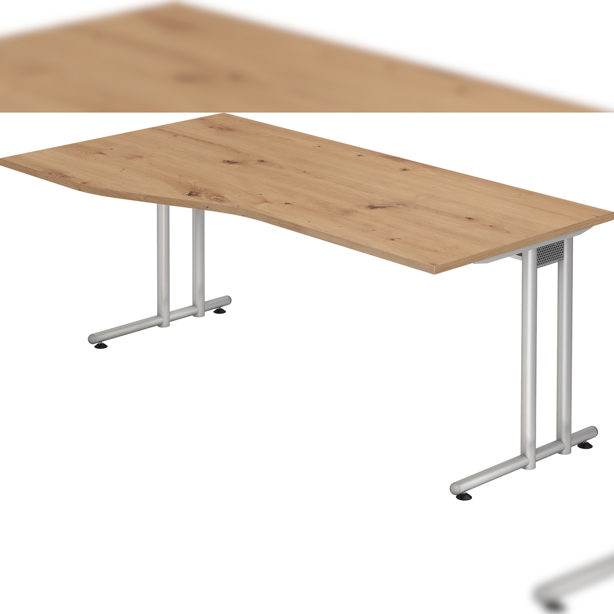 bümö Schreibtisch groß, N-Serie 180x100 cm, Tischplatte aus Holz in Asteiche, Gestell aus Metall in Silber - PC Tisch, großer Computertisch für's