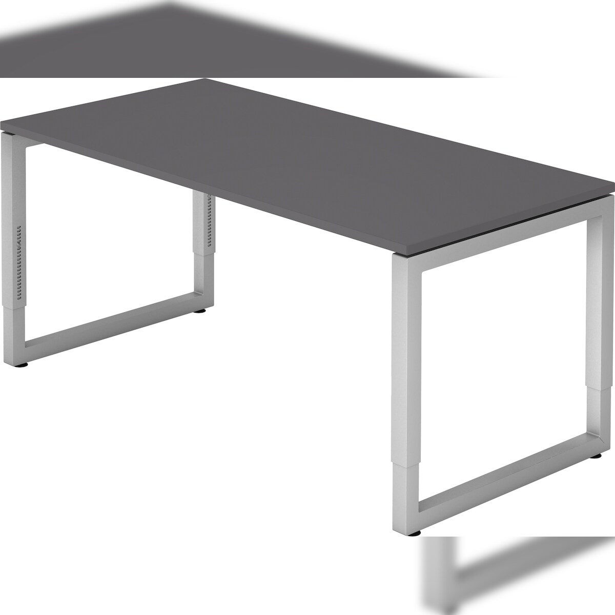 bümö höhenverstellbarer Schreibtisch R-Serie 160x80 cm in graphit, Gestell in Silber - PC Tisch für's Büro manuell höhenverstellbar, Computertisch