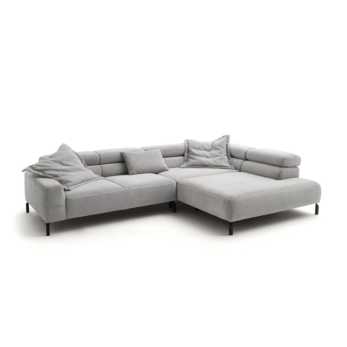 KAWOLA Sofa DELIA Ecksofa XL Cord hellgrau mit motorischem Sitzvorzug Recamiere rechts