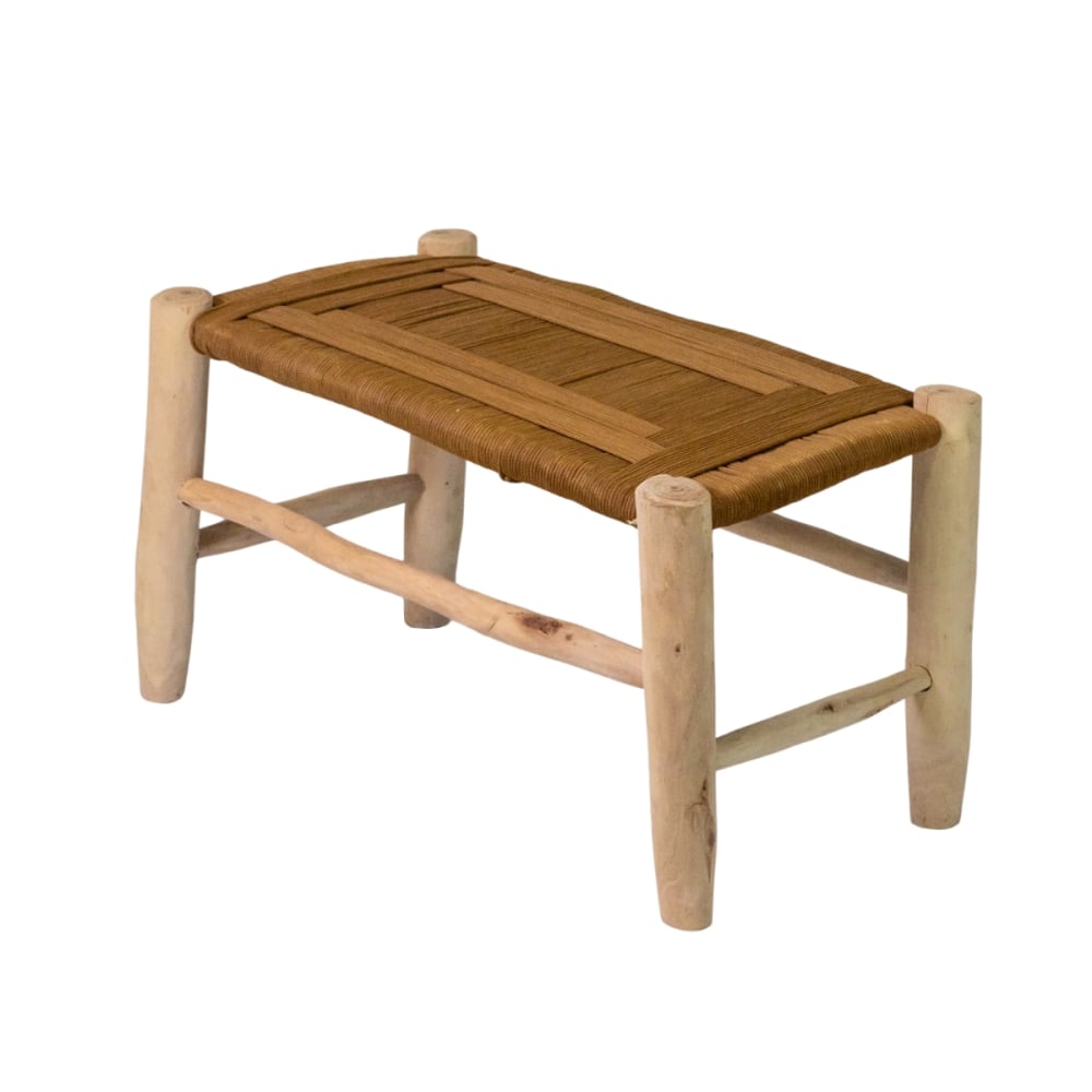 Grand banc camel en bois d'eucalyptus et corde 44x82x40
