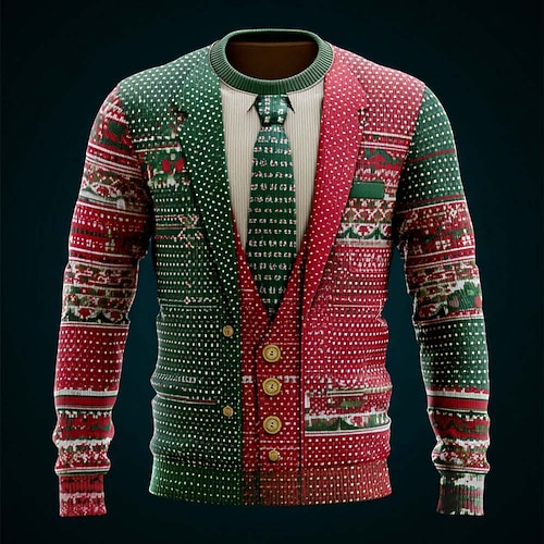 Maglione di Natale brutto Per uomo Costume di Natale Maglione Maglieria Girocollo Casual Vacanza Quotidiano Festival Tenere al caldo Manica Lunga Primavera Autunno Inverno Rosso