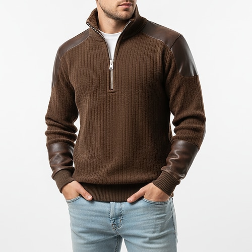 Per uomo Maglione Felpa con zip corta Maglia a coste Marrone Colletto Mao Mezza zip Semplice Patchwork A coste Testurizzato Sport Outdoor Casuale Quotidiano Streetwear Cool Abbigliamento Sportivo