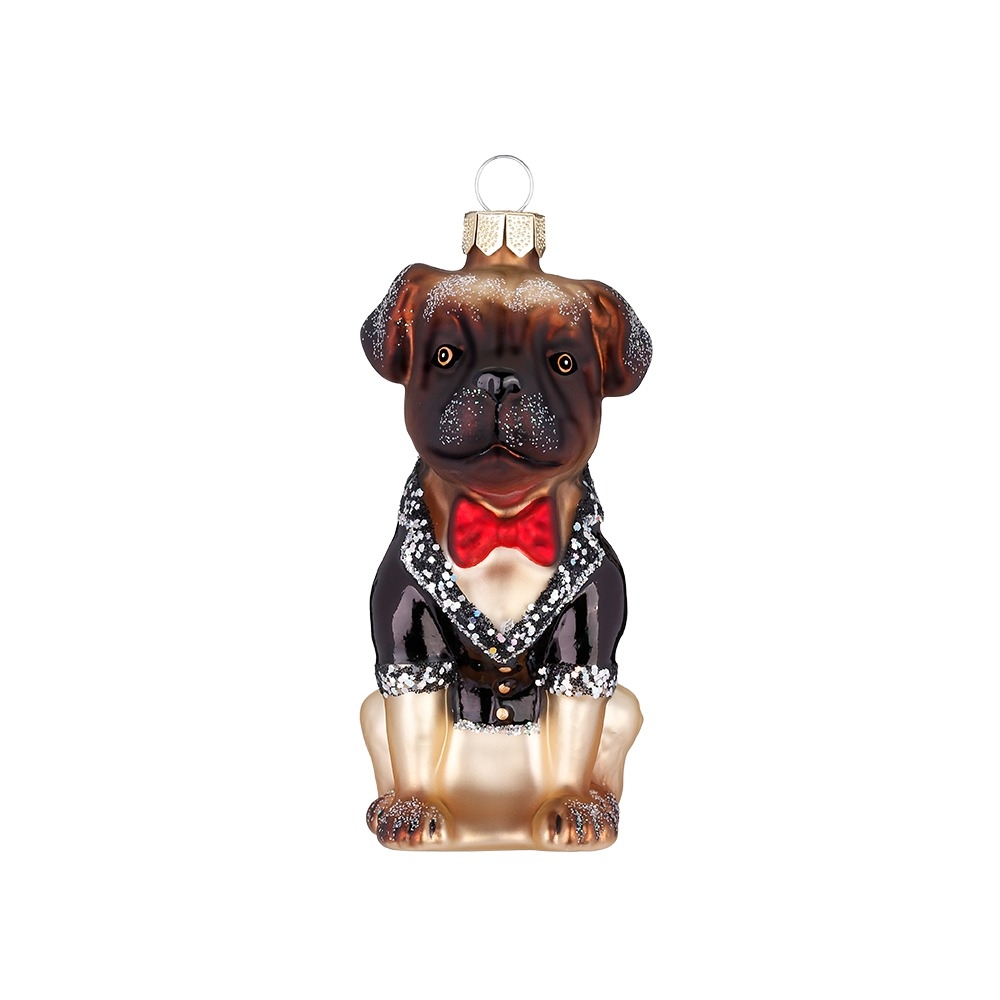 Inges Magic & Goodz Christbaumschmuck Hund Weihnachtsmops 9cm Glas Dekofigur Weihnachtsbaumschmuck