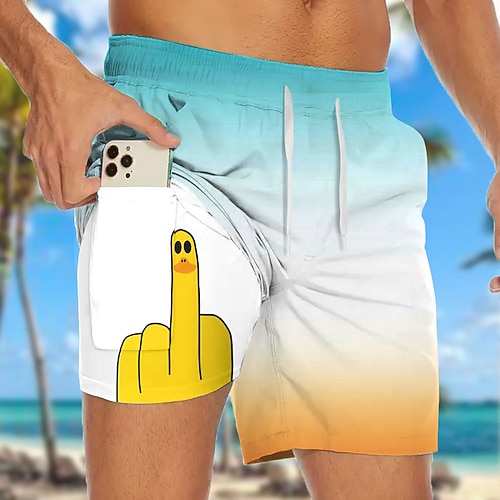 Per uomo Divertente Colore sfumato Anatra Pantaloncini foderati Pantaloncini da bagno 2 in 1 Pantaloncini da mare Misura del girovita medio Hawaiano Ferie Tasche Laterali Con Fodera a Compressione