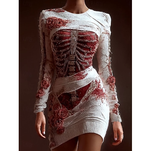 Abito Mini da Donna Abito T-Shirt Abito Tee Abito Bodycon Vacanza Casual Festa Slim Fit Grafica Teschio Manica Lunga Girocollo Bianco Primavera Autunno Inverno