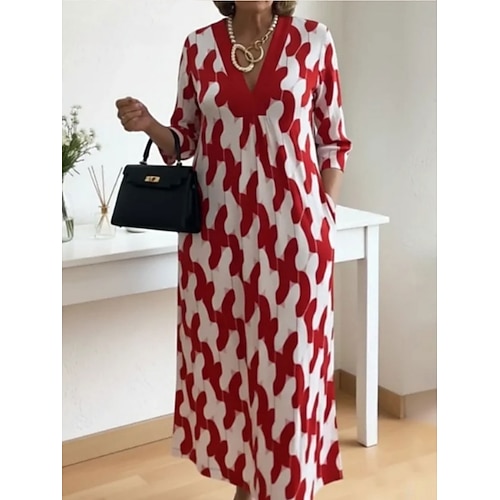 Per donna Abito al ginocchio Abito a trapezio Vacanza Casual Vestibilità comoda Grafico Astratto Manica 3/4 Scollo a V Blu Nero Rosso Verde Estate Primavera Autunno