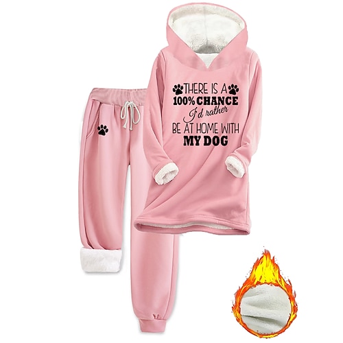 Per donna Caldo Quotidiano Set da due pezzi Tuta Set di Pantaloni Manica Lunga Con Cappuccio Grafico Lettera Coulisse Stampato Casuale Quotidiano Nero Rosa Rosa scuro Autunno Vestibilità regolare