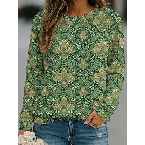 T-shirt da donna per il giorno di San Patrizio cuore shamrock moda maniche lunghe scollo tondo top regolare casual stampa verde erba nero bianco verde chiaro verde scuro primavera e autunno