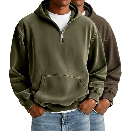 Per uomo Felpa con cappuccio Maglione Felpa con cappuccio e zip corta Nero grigio chiaro Grigio rosa Verde militareMarrone Blu navy vino Verde chiaro viola Con Cappuccio Semplice Zip a un
