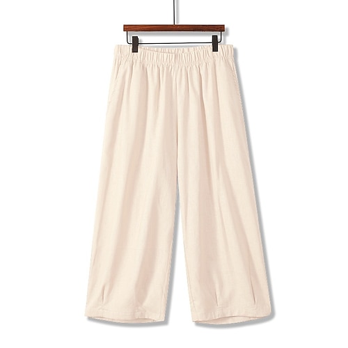 Per uomo Pantaloni di lino Pantaloni Pantaloni estivi Pantaloni da spiaggia Tasche A cordoncino Vita elastica Liscio Comfort Traspirante Giornaliero Per eventi Da mare Hawaiano Boho Nero Bianco