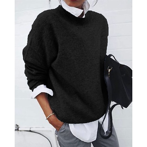 Per donna Felpa Maglione Elegante Moda Carino Tinta unica Plaid Girocollo Lavorato a maglia Stampato Manica Lunga Top Regolari Maglia All'aperto Casa Quotidiano Rosso bordeaux Nero Autunno Inverno