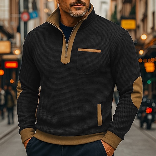 Per uomo Maglia Felpa con zip corta Bianco Verde militare Arancione Marrone Marrone 2 Mezza zip Blocco di colori Mimetico Mezza cerniera Stampato Casuale Quotidiano Ferie Poliestere Vintage