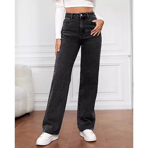 Per donna Jeans Chinos Dritto Vacanza Vintage Streetwear Lunghezza intera Vita media Semplice Tasca Elastico in vita Confortevole Inelastico Micro-elastico Quotidiano All'aperto Streetwear Blu marina