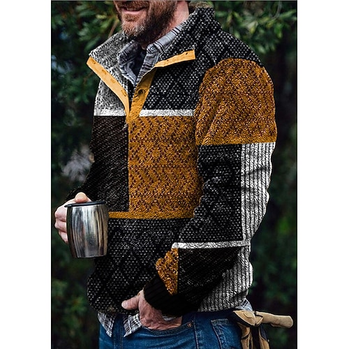 Per uomo Geometrico Felpa Felpe Manica Lunga Felpa Henley Stampa Grafica Ferie Uscire Festival Fibbia Stampato Autunno Inverno